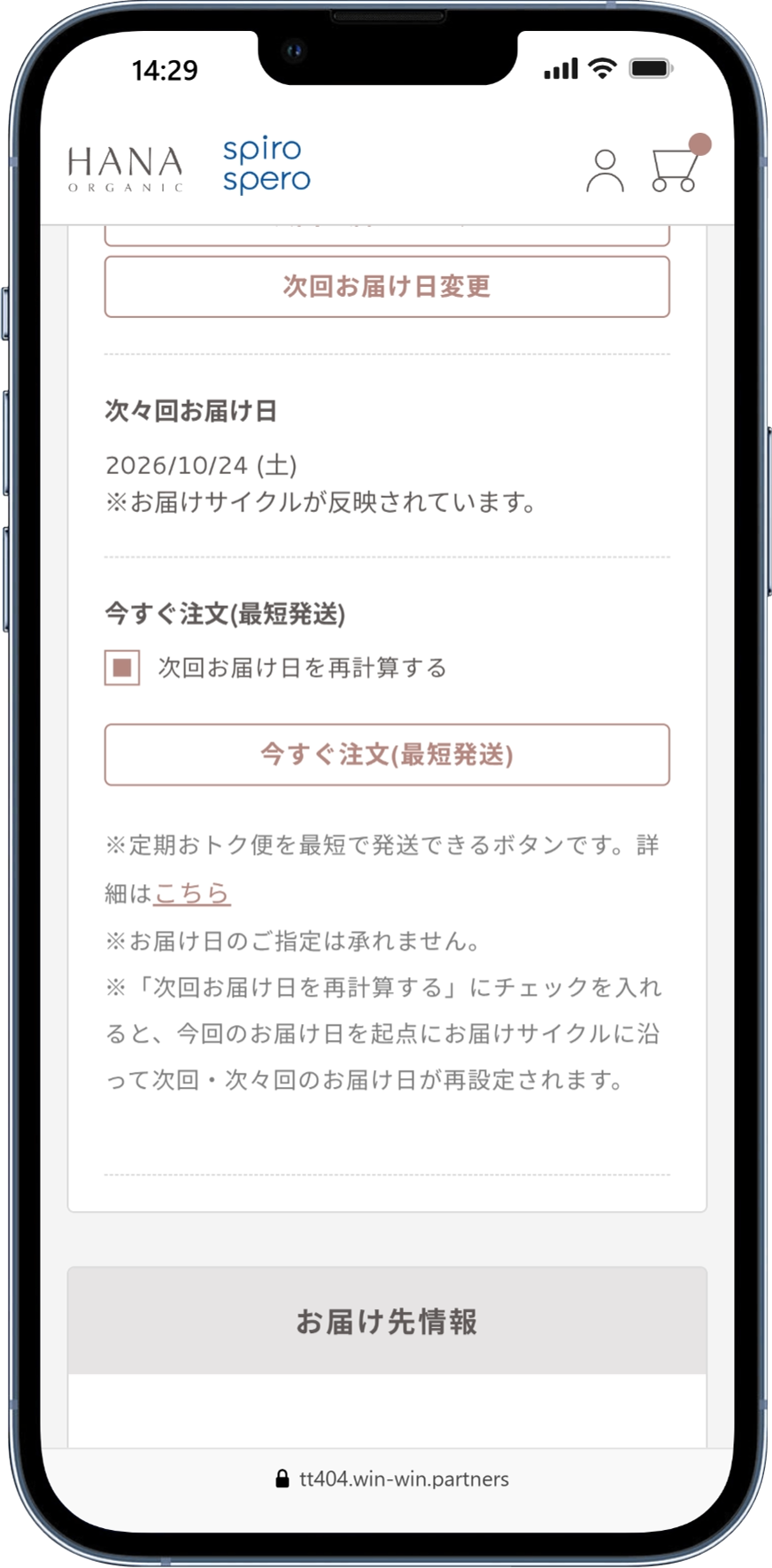 【チェックあり】 今回の発送日を基準に、次回のお届け日も自動で後ろ倒し(再設定)されます。